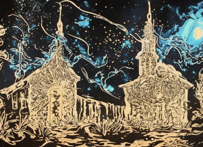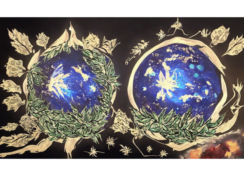 Voices Unheard : The Church and Marginalized Communities is a 360-degree projection installation that uses AI-generated imagery drawn from Johnston’s and Nolan’s artworks. The immersive work reimagines a “church” for Indigenous, Queer, and POC communities, layering pattern, plant life, astronomy, and architecture to reflect on past and future possibilities.