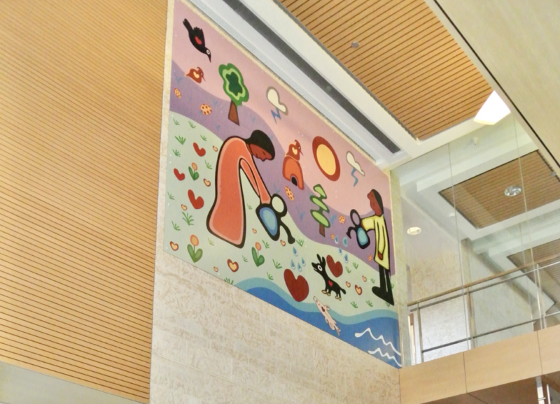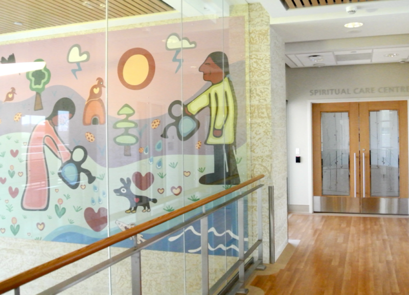 The Good Life and Watering Hearts by Isaac Murdoch are large-scale artworks printed on aluminum composite panels and installed within a healthcare setting. Centering Indigenous voices and teachings, the works affirm love as powerful medicine and position healing as both a clinical and cultural practice. Through bold, symbolic imagery, they offer comfort, care, and collective strength to all who pass through the space.