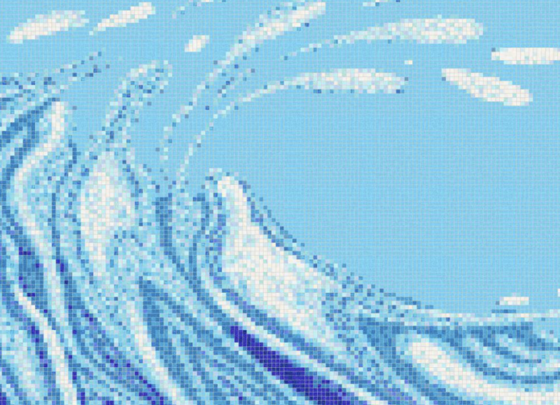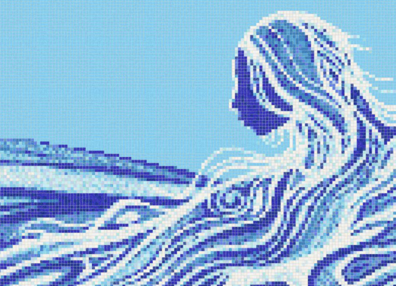 GIDINAWENDIMIN is a 95-square-metre mosaic showcasing Anishinaabe water teachings, where nibi (water) is understood as a sacred, life-sustaining spirit. The work honours women as Water Keepers, entrusted through natural laws to protect and advocate for water across generations. It highlights the sacred feminine and collective responsibility to safeguard land, life, and spirit.