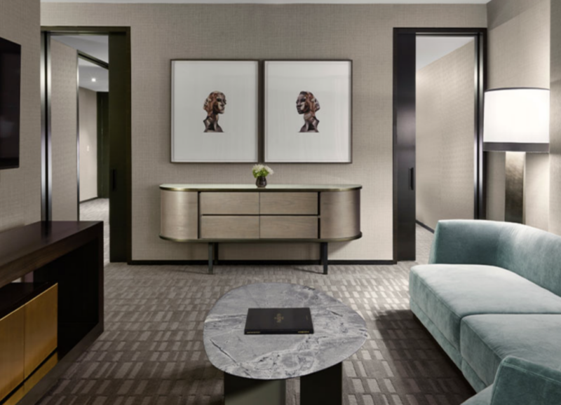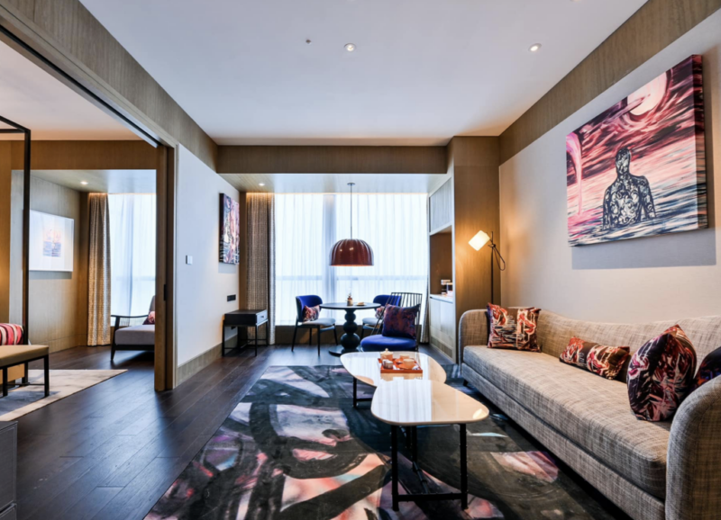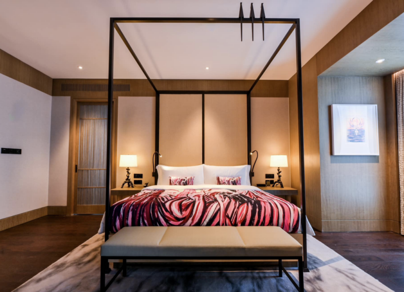 Nigel Nolan x JUMA’s permanent hotel suite at the MGM Westbund Hotel, showcases Nolan’s original paintings throughout the room. The project extends into a ready-to-wear collection by JUMA and custom hotel furnishings and textiles, both incorporating Nolan’s artworks. Together, the elements translate the Floral Pour series into a cohesive architectural and design environment.