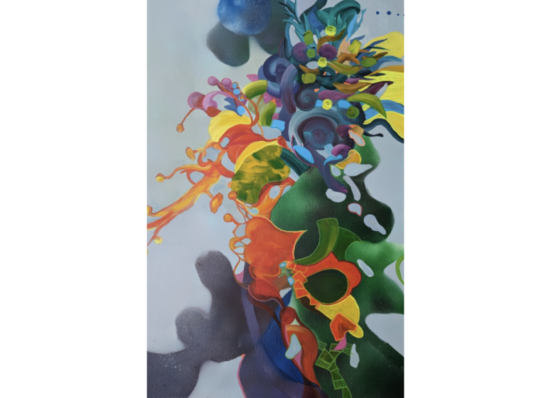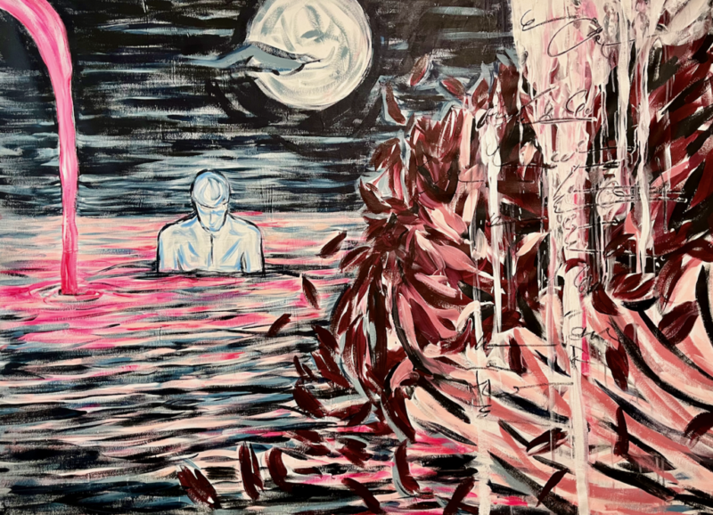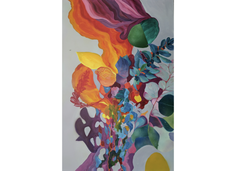 Paintings by Shevon Lewis blend introspective portraiture with expressive composition, exploring duality and emotional transformation. Through complex colour, texture, and gesture, the works balance turbulence and stillness, reflecting psychological depth and visual movement. Lewis’ practice draws from lived emotional states and intuitive mark-making, creating images that evoke both contemplation and dynamic presence.